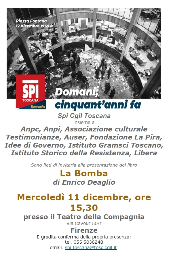 S.P.I. CGL Toscana in collaborazione con ANPC, ANPI, Associazione culturale Testimonianze, AUSER, Fondazione La Pira, Idee di governo, Istituto Gramsci Toscano, Istituto Storico della Resistenza, Libera