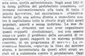 Come noto, la classica interpretazione della dottrina marxista prevedeva che fosse compito dell’avanguardia comunista e della classe operaia incanalare le caotiche energie del popolo in una disciplinata azione rivoluzionaria. Del resto, nei primi anni di vita, il Partito Comunista d’Italia concepiva sé stesso come il “partito dei proletari”, ”dell’economia socializzata”, o “della classe operaia”, per citare solo alcuni dei tanti epiteti de “L’Ordine Nuovo”, sino a che, nella seconda metà degli anni ’40, cominciò a definirsi sempre di più come “partito del popolo”.