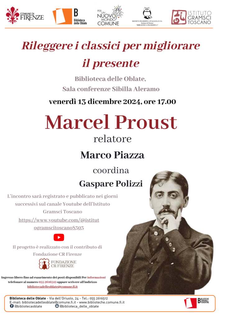 Rileggere i classici per migliorare il presente: Marcel Proust, 13 dicembre ore 17, Biblioteca delle Oblate