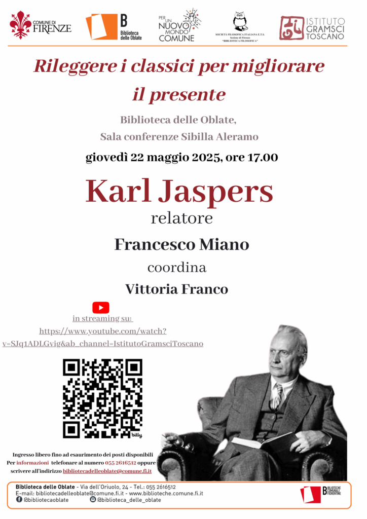 Rileggere i classici per migliorare il presente: Karl Jaspers, 22 maggio ore 17, Biblioteca delle Oblate. Video della conferenza all’interno dell’articolo