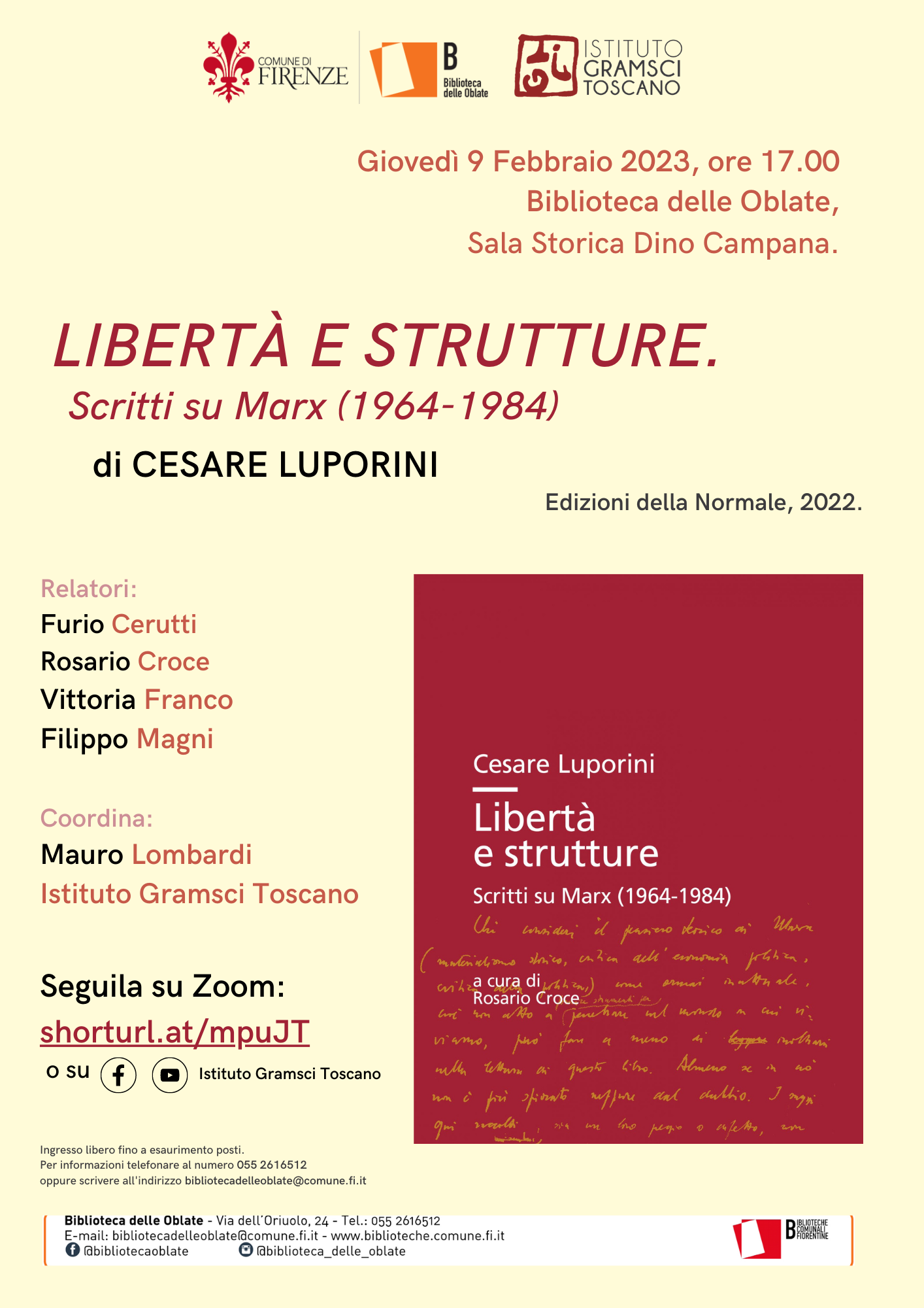 L’Istituto Gramsci Toscano, in occasione degli eventi organizzati per il Centenario del P.C.I., è lieto di poter ospitare il 23 marzo alle ore 16:00 la presentazione del libro di Luciano Canfora, dal titolo “La metamorfosi” A
